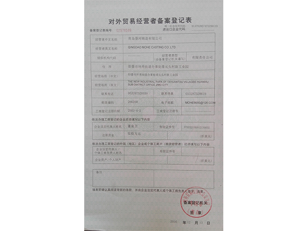 青島墨河鑄造有限公司 聯(lián)系人:董照 電話:13953213469(微信同號) 座機(jī):0532-87566543 郵箱:mohe@moher.cn QQ:1678294021 地址:青島即墨市泰山一路南端186號